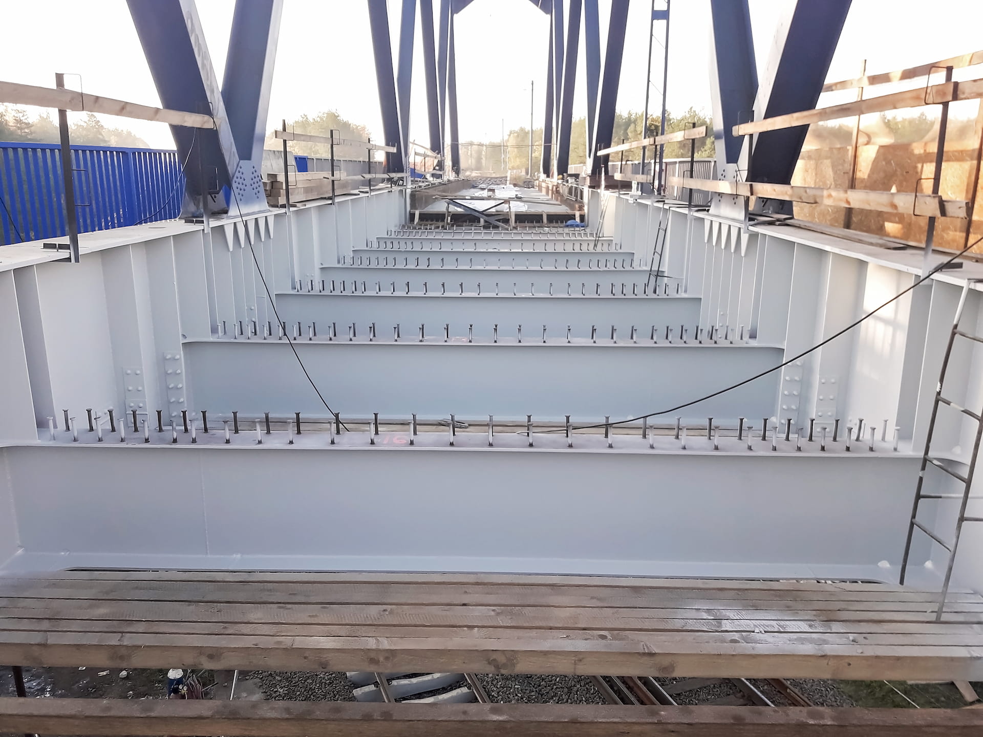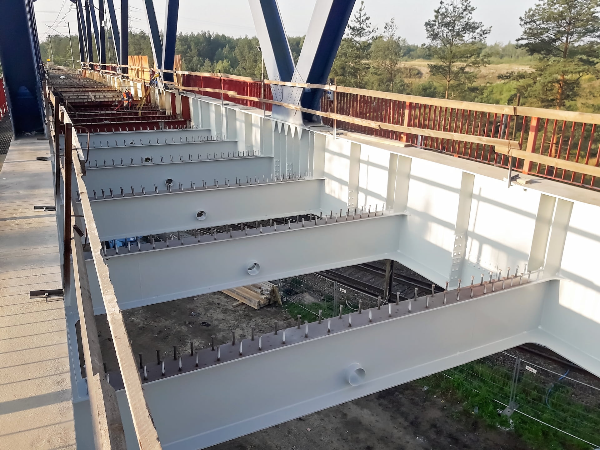 Wzmocnienie konstrukcji stalowej wiaduktu wykonano w następującej kolejności: