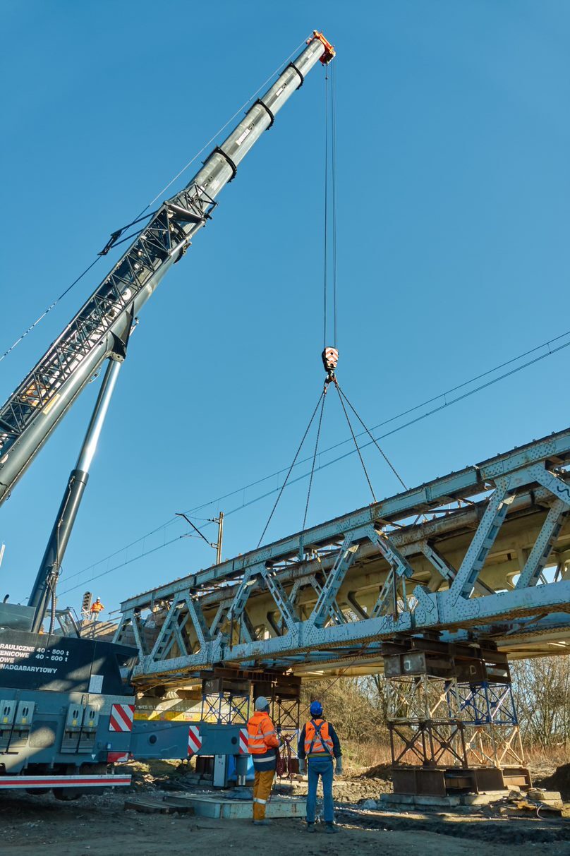 Zrealizowano dwa nowe przęsła kratownicowe stalowe wraz ze stalowymi chodnikami technicznymi, które zamontowano w miejscu docelowym przy użyciu dźwigu.